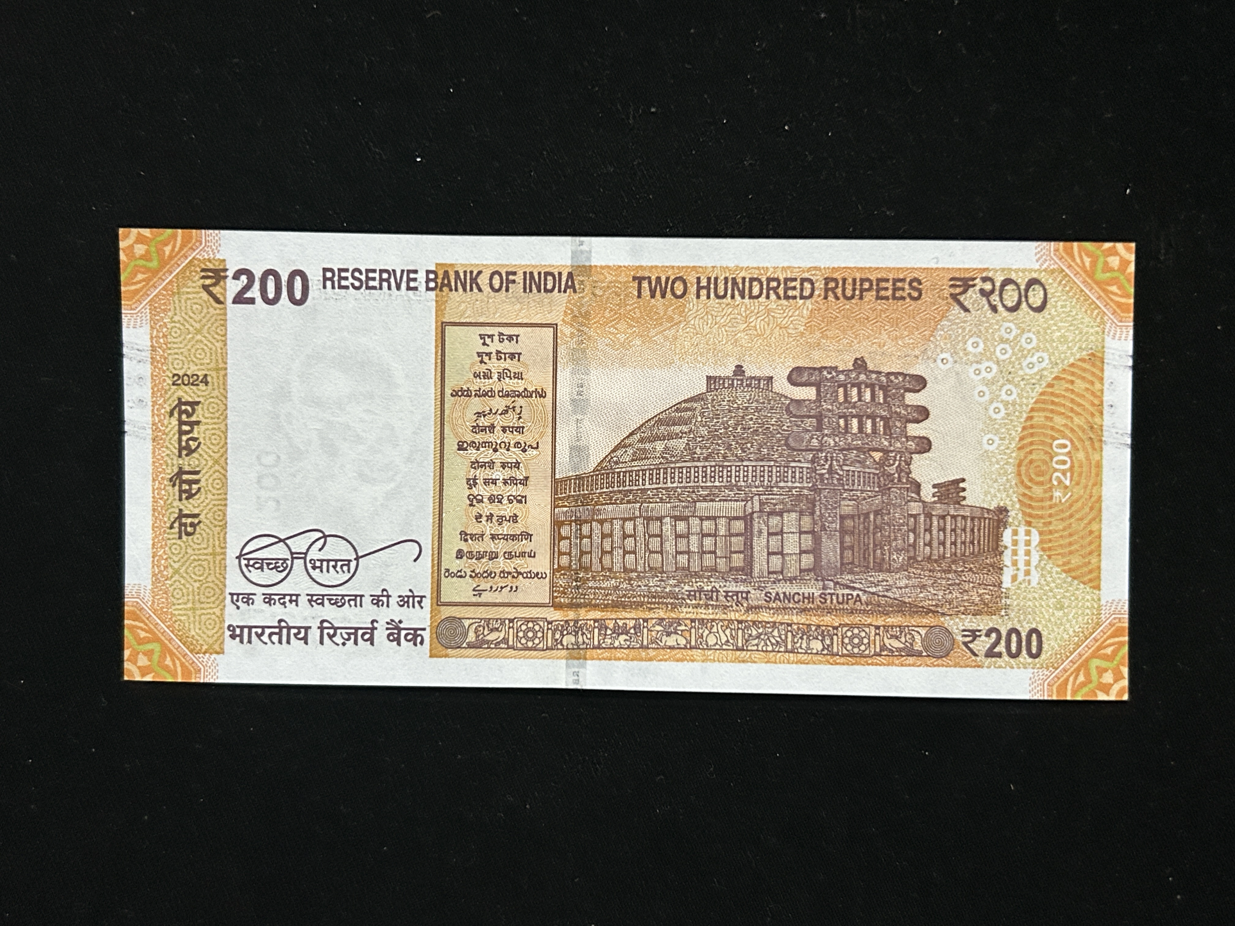 India, 2024 Rupees 200 Banknote, Super Solid Fancy Serial Number 7 - 777777, Sign. Shaktikanta Das, Inset L, UNC
