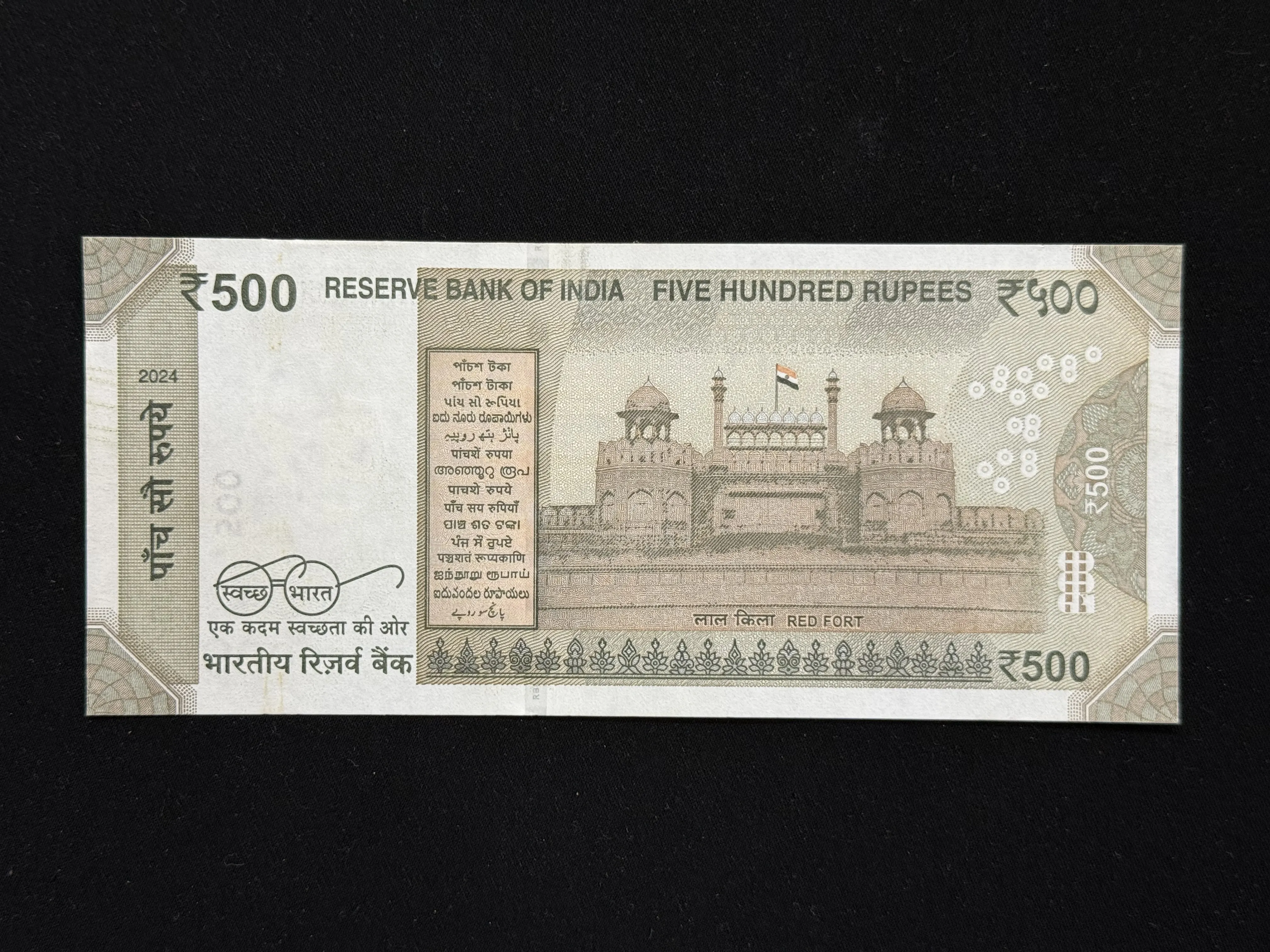 India, 2024 Rupees 500 Banknote, Fancy Serial Number 700000, Sign. Shaktikanta Das, Inset K, UNC, (6MR 700000).