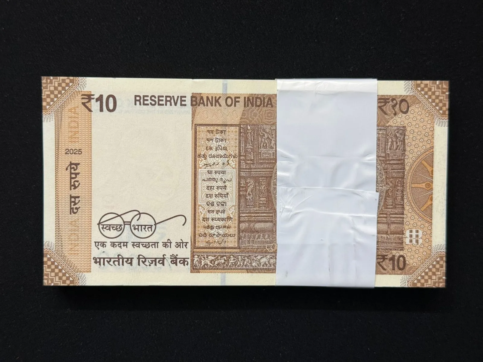 India, 2025 Rupees 10 Complete Serial Bundle of 100 Notes, Holy Fancy Serial Number 786-000, Fancy Serial Number Ending 916 (Hallmark), Sign. Sanjay Malhotra, UNC, (61A 785901)