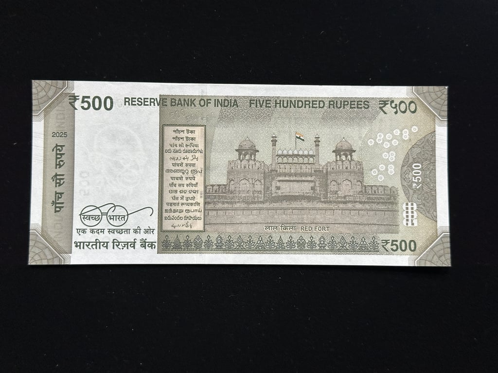 India, 2025 Rupees 500 Banknote, Fancy Serial Number 800000, Sign. Sanjay Malhotra, Inset Plain, UNC