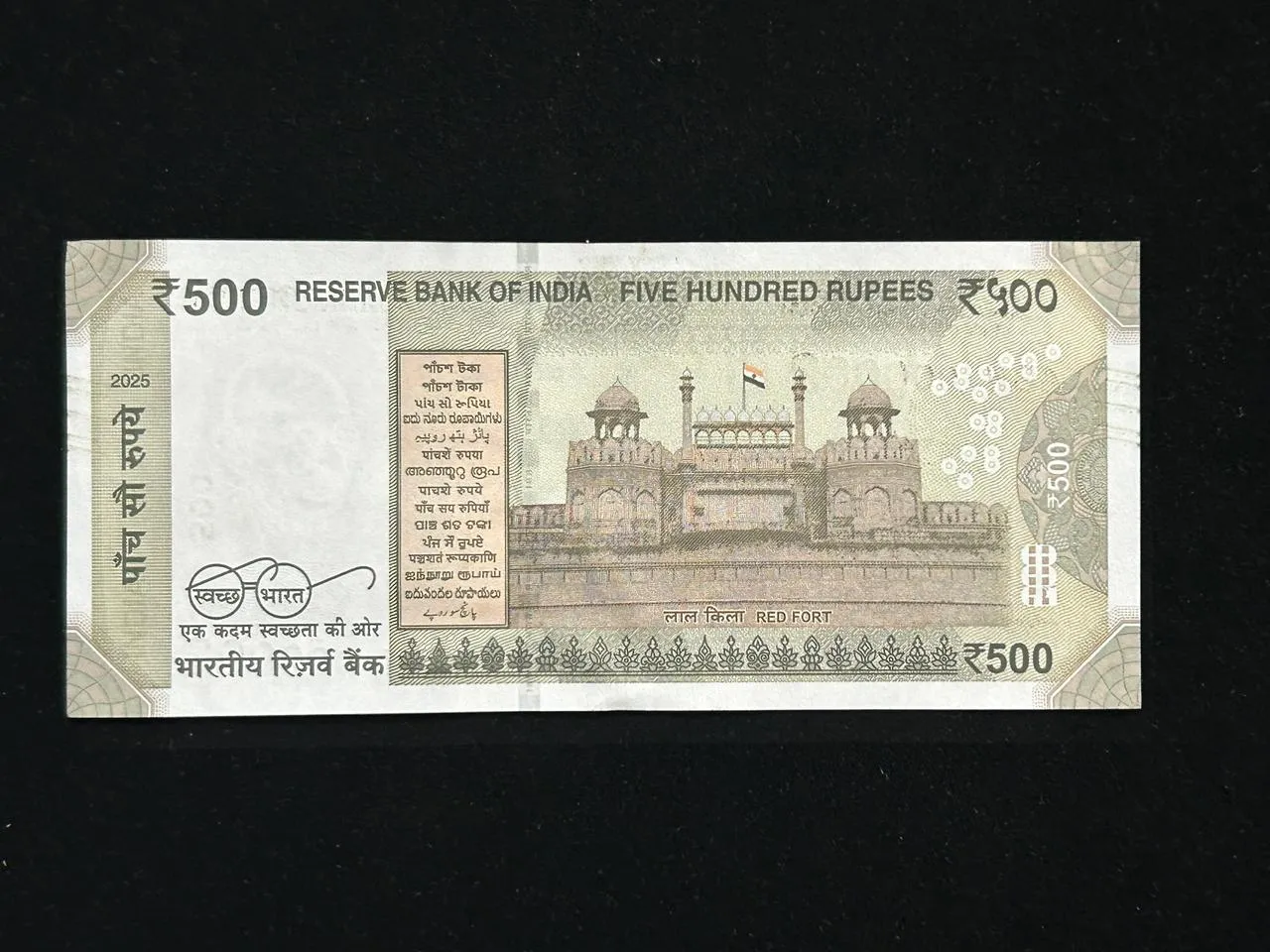 India, 2025 Rupees 500 Banknotes, Lower Fancy Serial Number 000002, Sign. Sanjay Malhotra, Inset L, UNC, (4BW 000002)