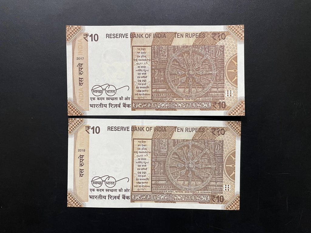 Indian Pair of Rupees 10 Fancy Serial Number Banknotes 108214 - 214108