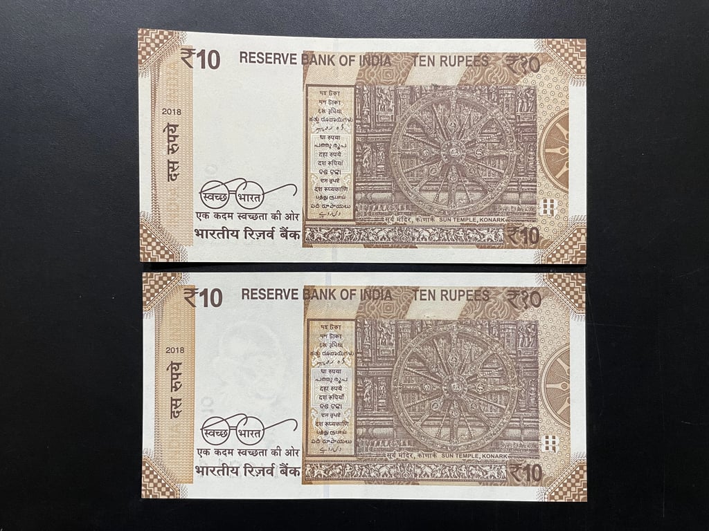 Indian Pair Rupees 10 Fancy Serial Banknotes Starting 143 (I Love You) Ending with 541 (SAI) & 214 (RAM)