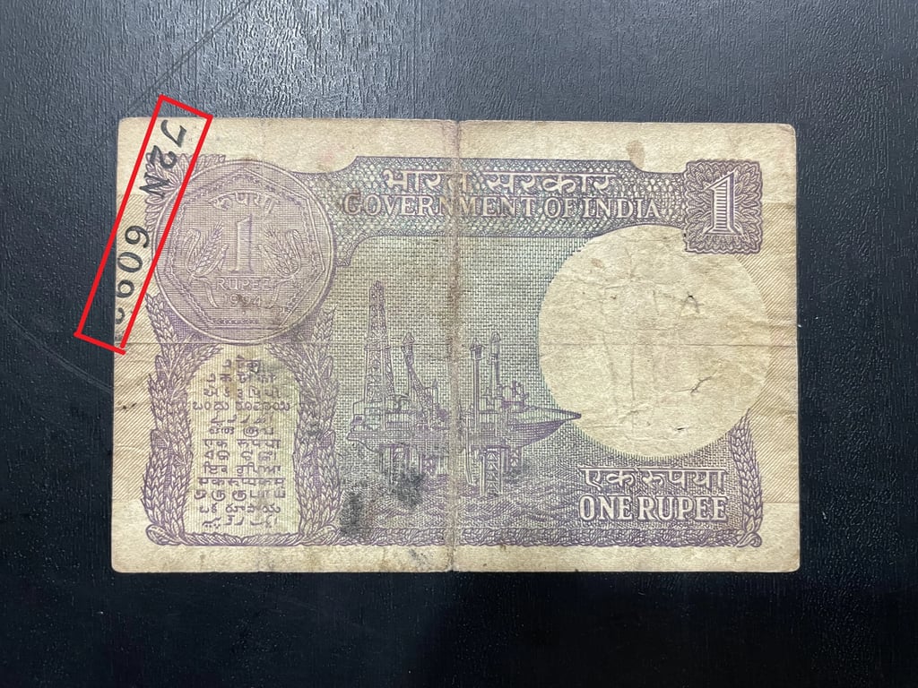 India, Rupee 1 Rare Error Banknote, Serial Number Printing Omitted on Obverse & Serial Number Printed Partially on Reverse, Sign. Montek Singh Ahluwalia, Used Condition