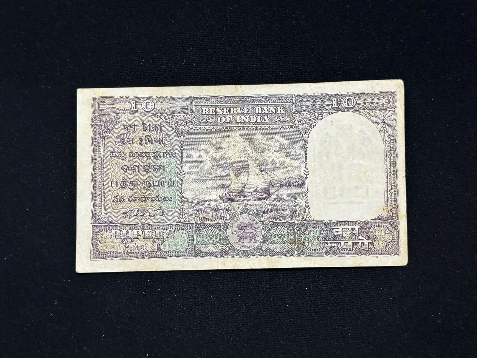 India, Rupees 10 Banknote, 5th Issue, Sign. H. V. R. Iyengar, Inset Plain, (W82 304477)