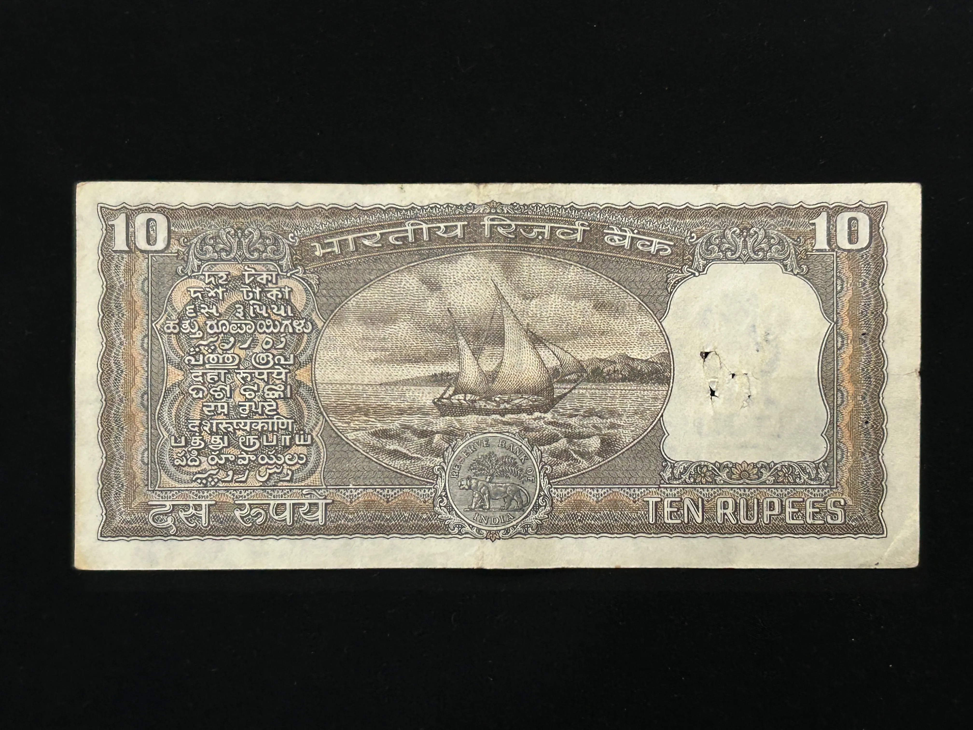 India, Rupees 10 Banknotes, Black Boat Issue (Incorrect Urdu), Holy Fancy Serial Number Middle 786, Sign. S. Jagannathan, Inset Plain, (S51 478630)