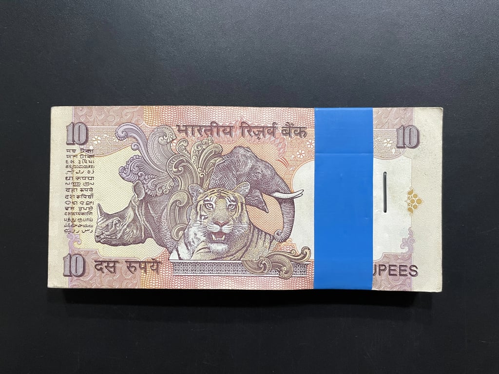 Indian Rupees 10 Complete Serial Bundle of 100 Notes