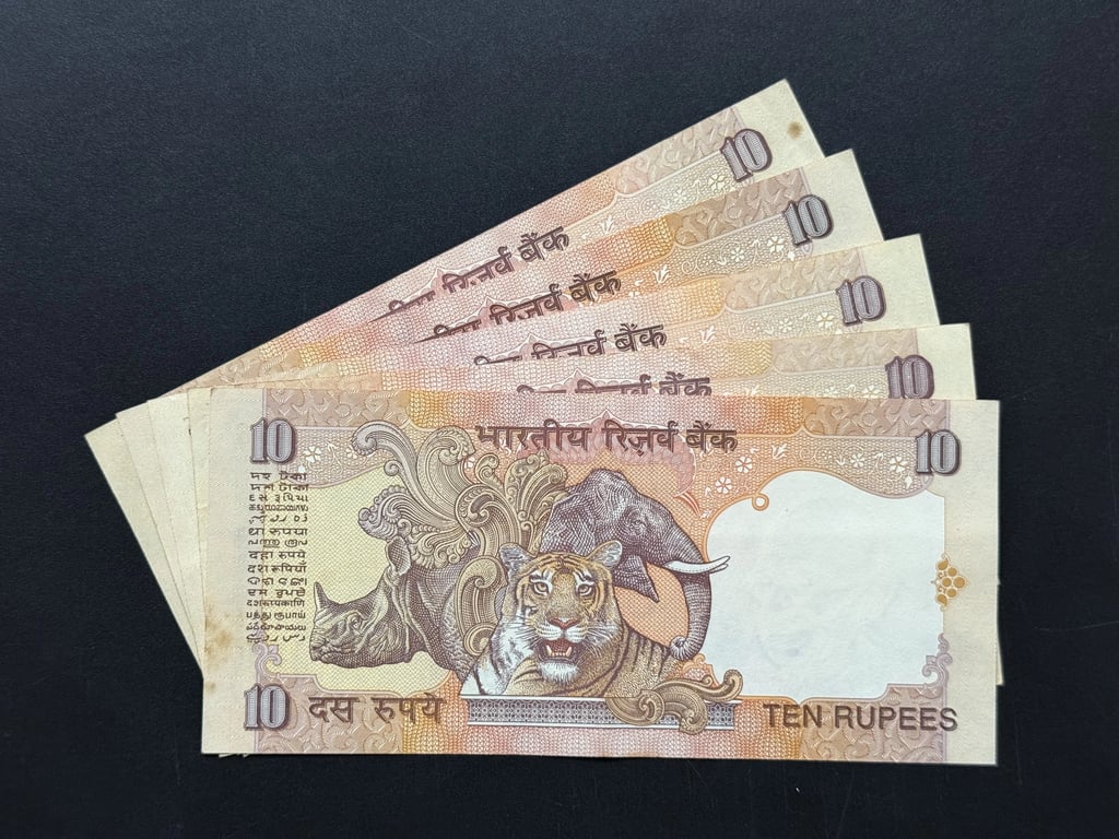 India, Rupees 10 x 5 Banknotes, Holy Fancy Serial Number Ending 786, Sign. Bimal Jalan