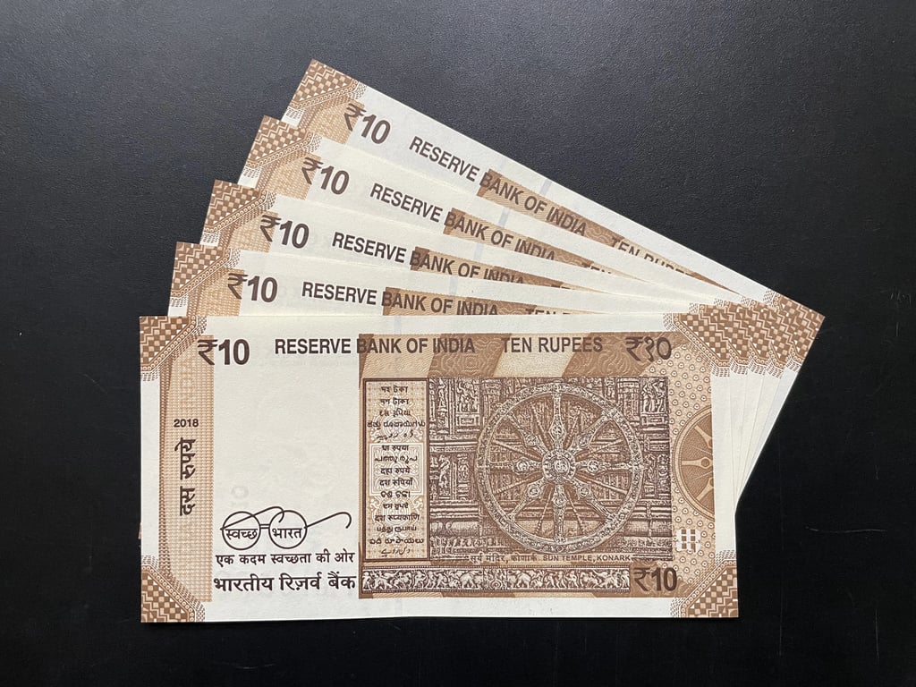 Indian Rupees 10 x 5 Doubling Fancy Serial Number Banknotes of Same Prefix 00H