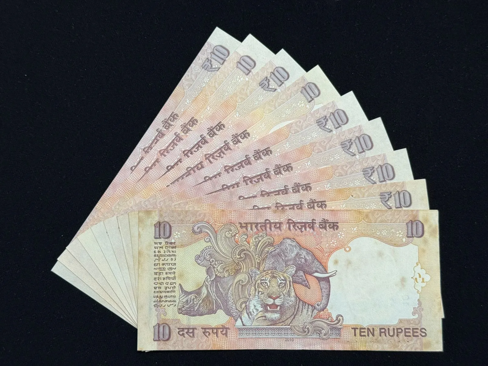 India, Rupees 10 x 9 Banknotes, Set of Fancy Mirror Serial Number 001100 - 009900, Sign. D. Subbarao, UNC, (83A 001100)