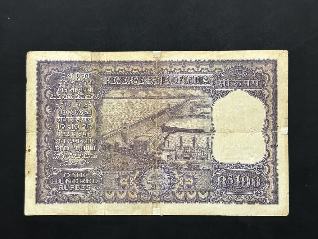 India, Rupees 100 Banknote, Dam Fafda Issue, Sign. P. C. Bhattacharya, Used Condition