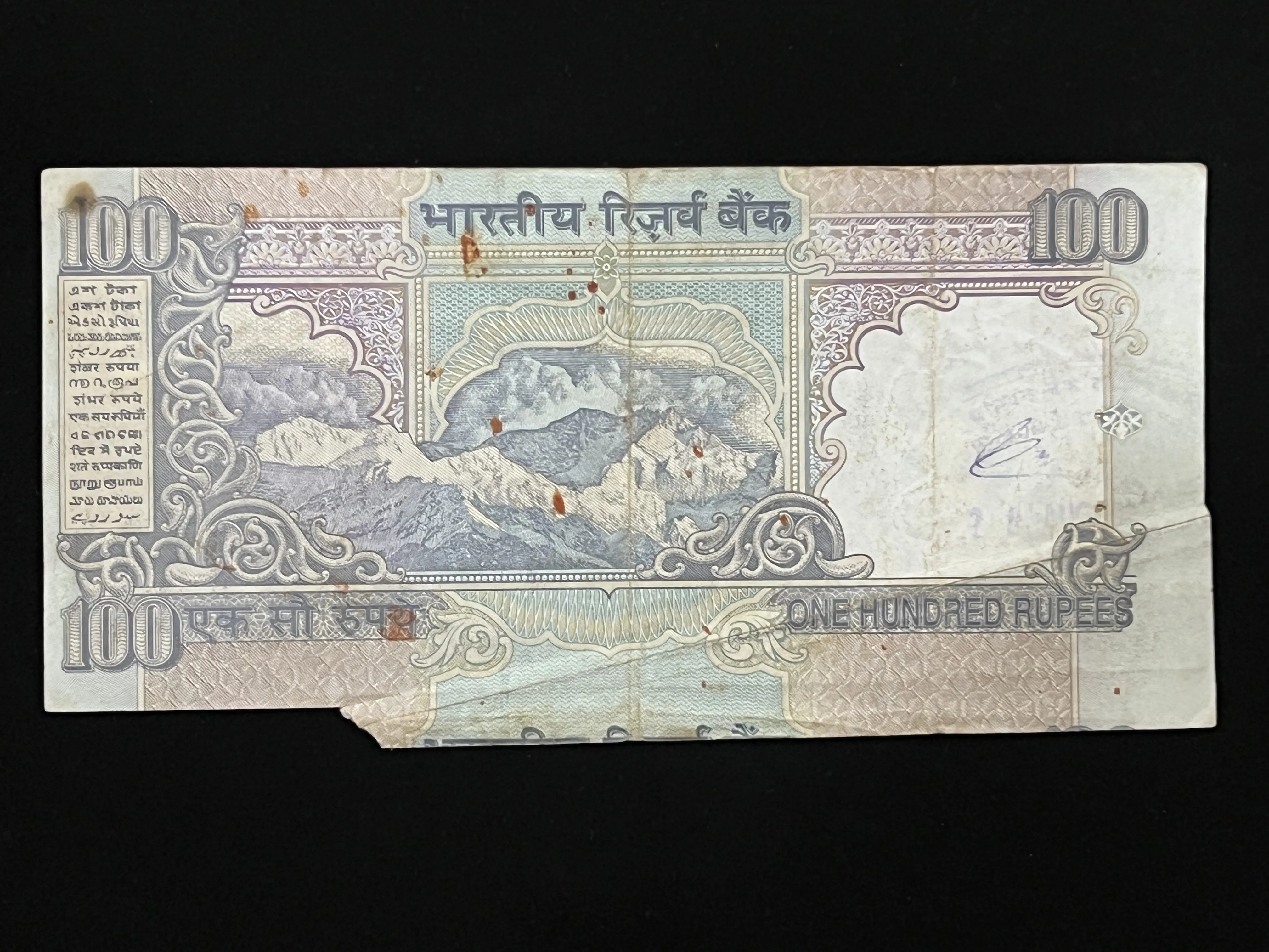India, Rupees 100 Banknote, Sheet Fold Cutting Error, Sign. C. Rangarajan Inset E, RARE, (7HQ 626000)
