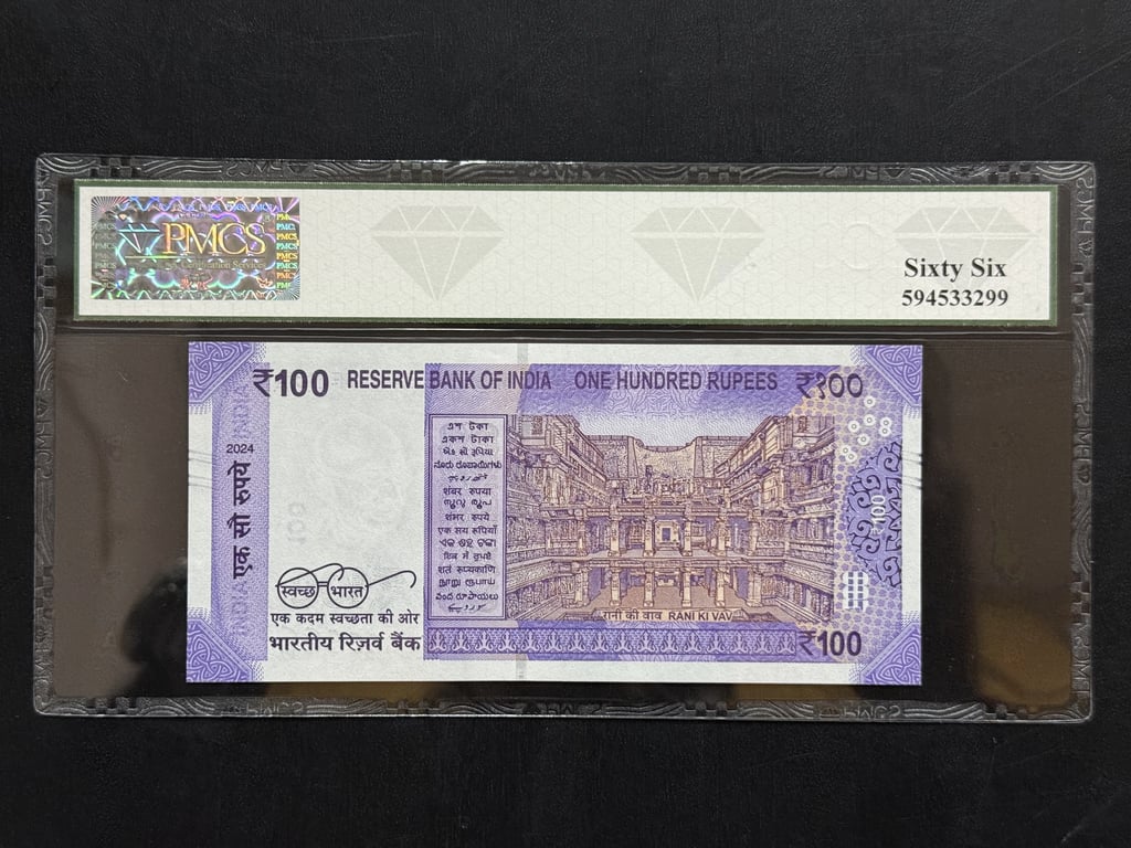 India, Rupees 100 Banknote, Super Solid Fancy Serial Number 6 - 666666, Sign. Shaktikanta Das, PMCS Graded 66 (Gem UNC) Top Grade