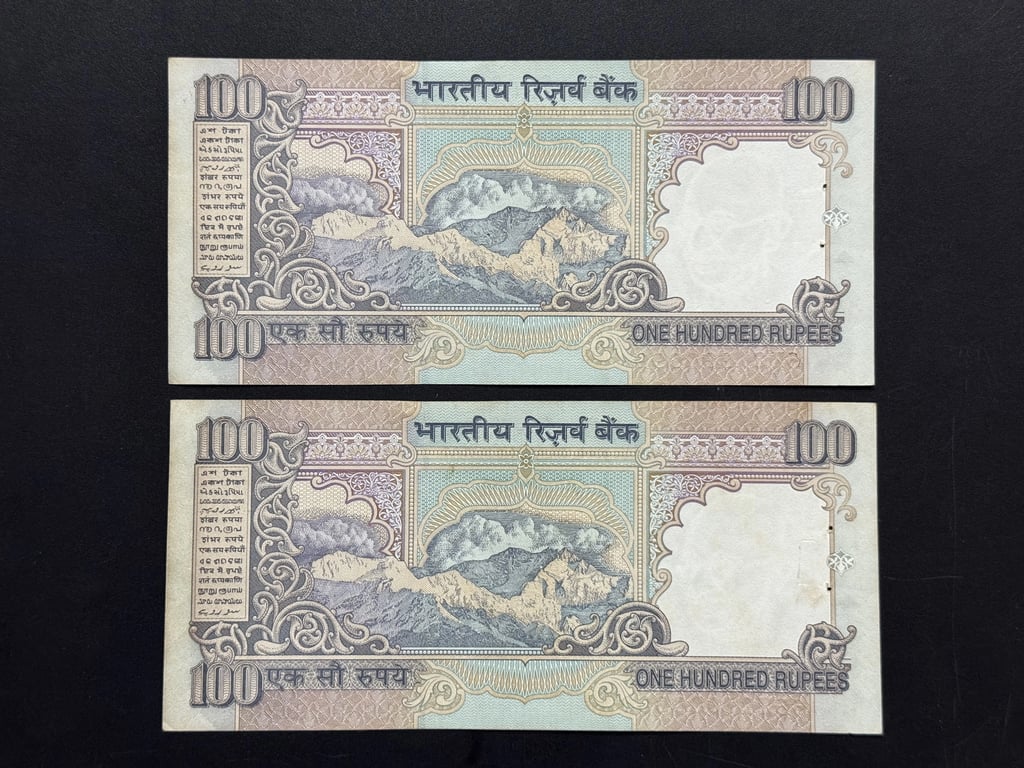 India, Rupees 100 x 2 Banknotes, Fancy Serial Number 6KC 999999 - 6KC 1000000 (One Million), Sign. C. Rangarajan