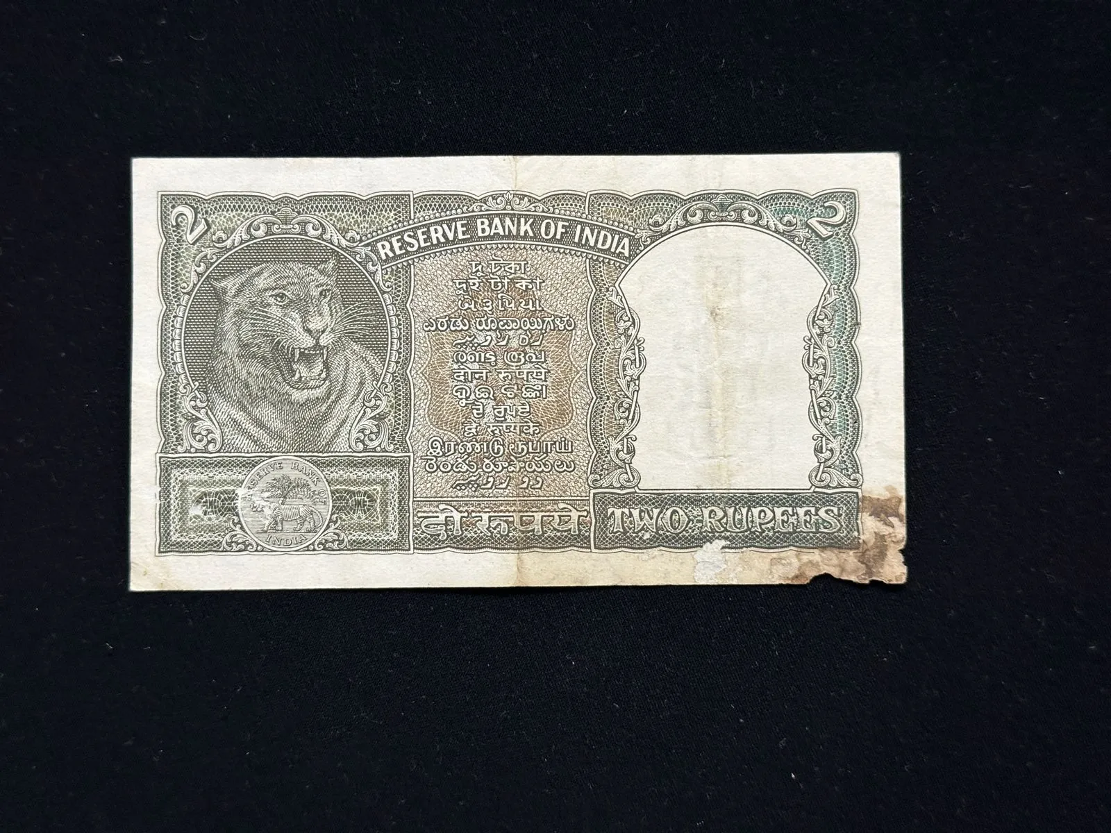India, Rupees 2 Banknote, Olive Green Issue. Sign. P.C. Bhattacharya, (C81 444349)