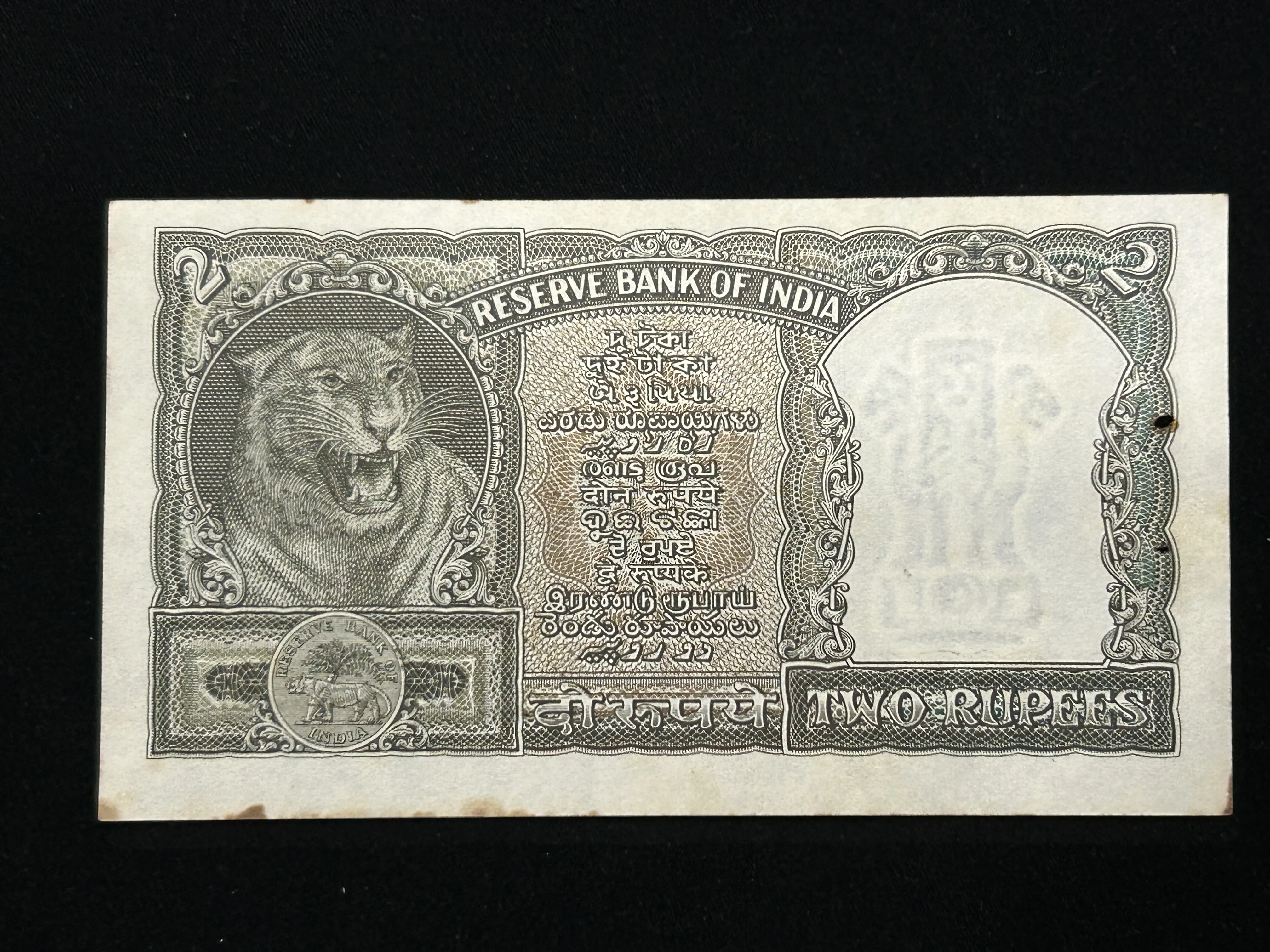 India, Rupees 2 Banknote, Olive Green Issue, Sign. P.C. Bhattacharya, UNC, (E89 994935)