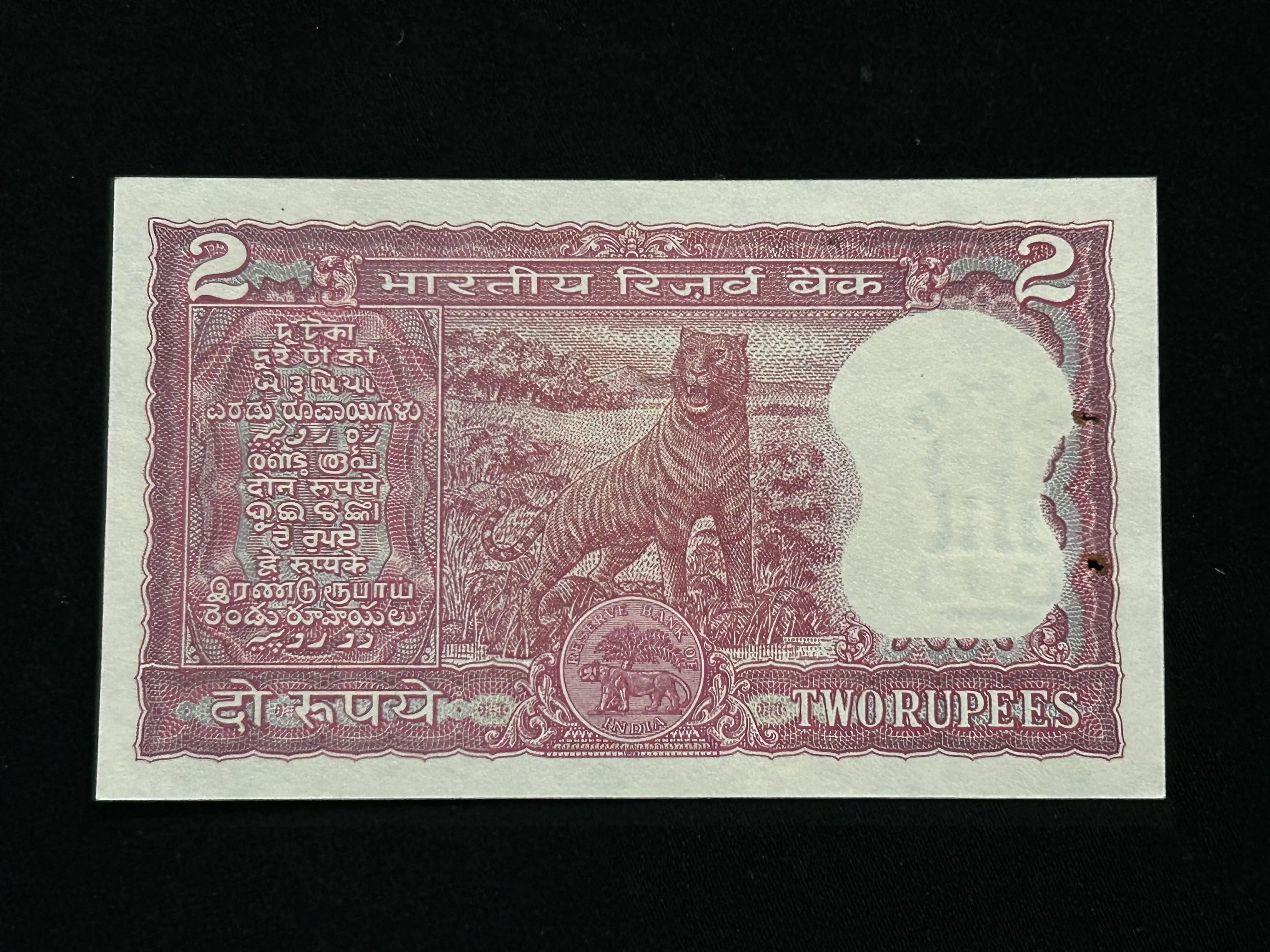India, Rupees 2 Banknote, Standing Tiger Issue (Incorrect Urdu), Sign. S. Jagannathan, UNC, (D1 908749)
