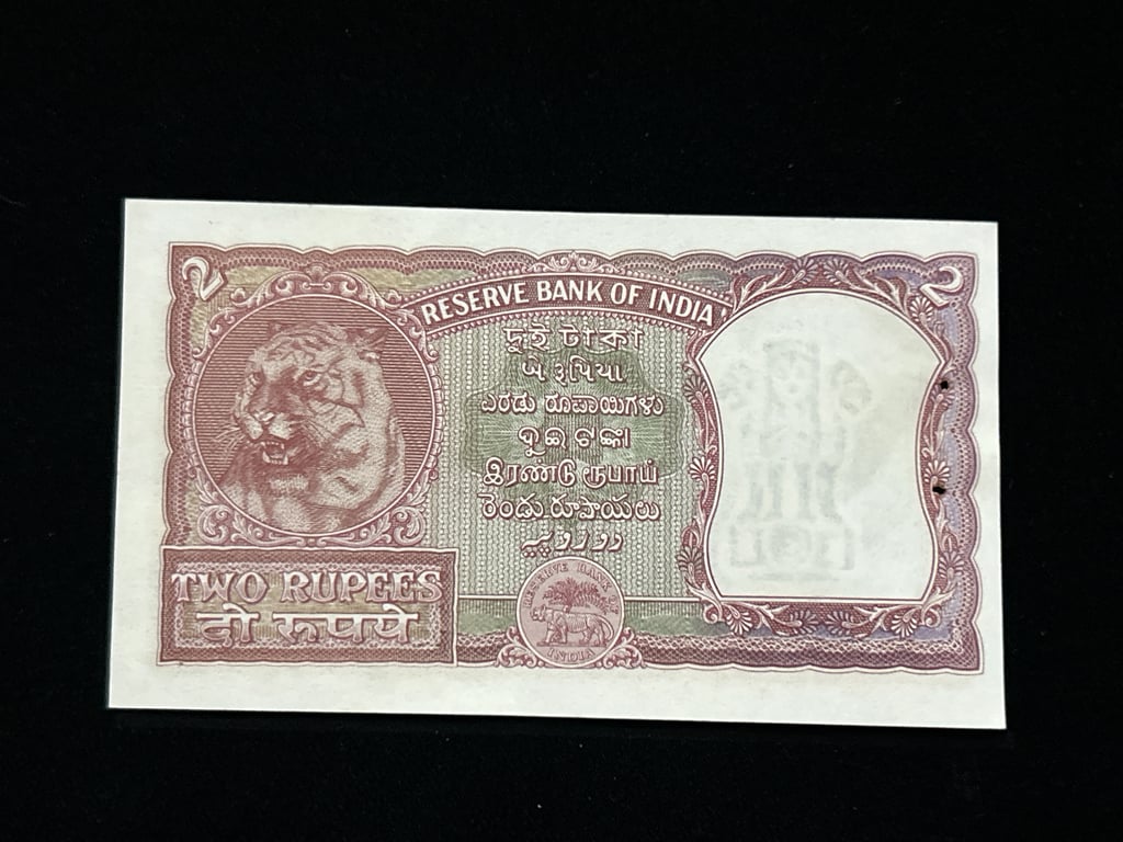 India, Rupees 2 Banknotes, Half Tiger Issue (Brown), Sign. H.V.R. Iyengar, UNC