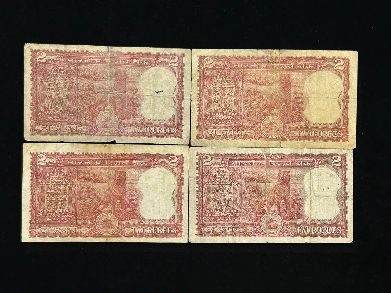 India, Rupees 2 x 4 Banknote, Holy Fancy Serial Number Ending 786, Standing Tiger Issue, Sign. Manmohan Singh, Inset Plain, (31E 954786)