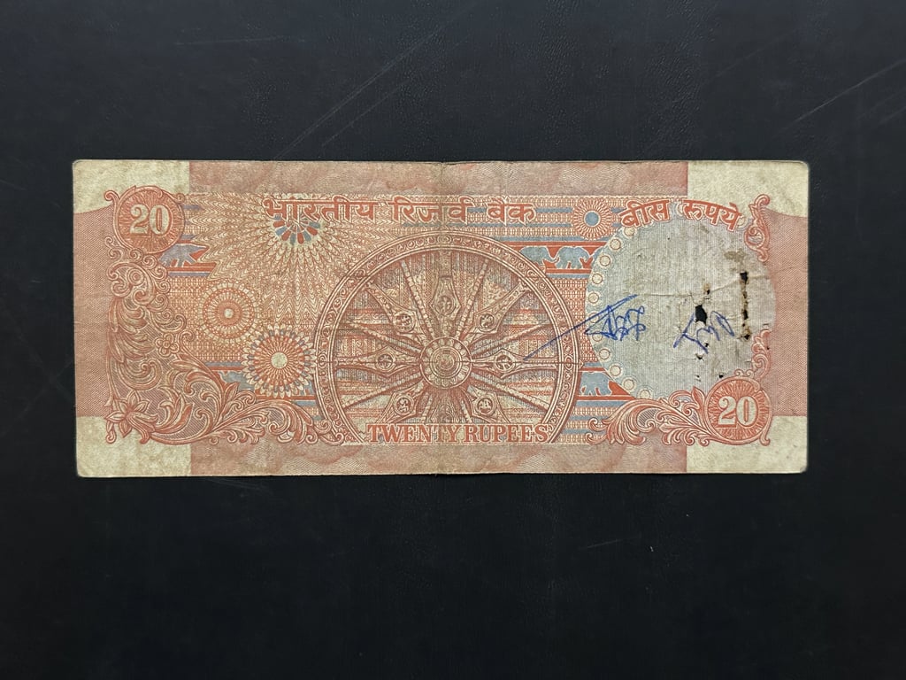 India, Rupees 20 Banknote, Konark Wheel Issue, Sign. M. Narsimham, Used Condition