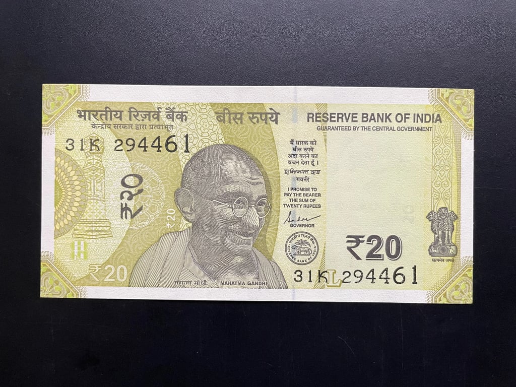 Indian Rupees 20 Prefix Printed Reverse Side Error Banknote