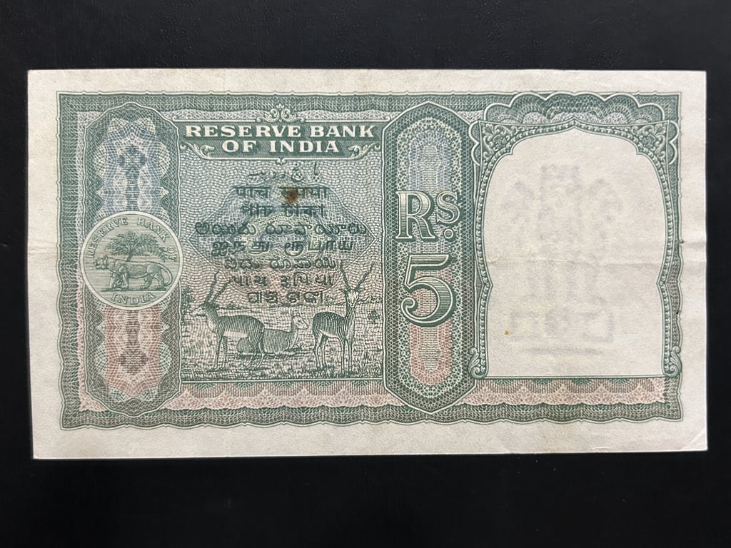 India, Rupees 5 Banknote, 1st Issue (Only English), Sign. B. Rama Rau