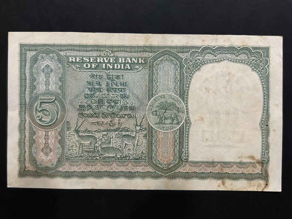 India, Rupees 5 Banknote, 2nd Issue (Incorrect Hindi), Sign. B. Rama Rau