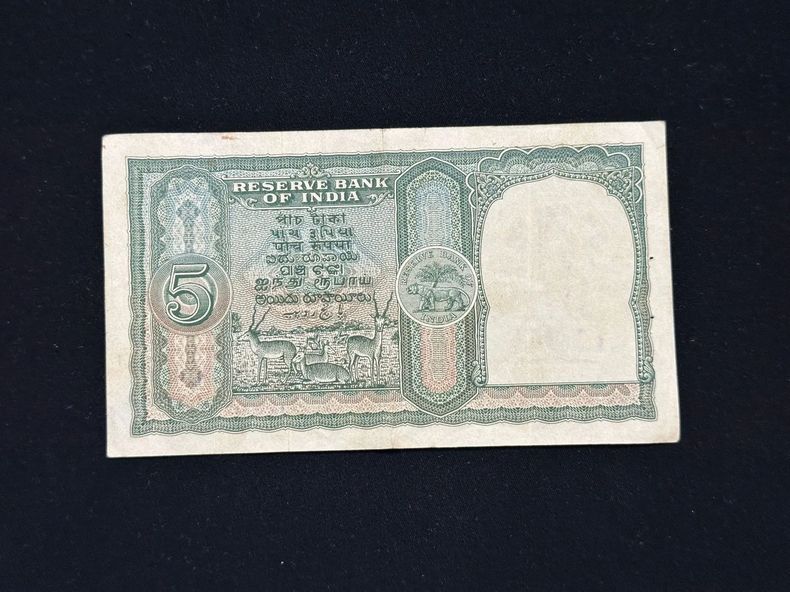 India, Rupees 5 Banknote, 6 Deer Issue (2nd Issue), Sign. B. Rama Rau, (G29 839497)