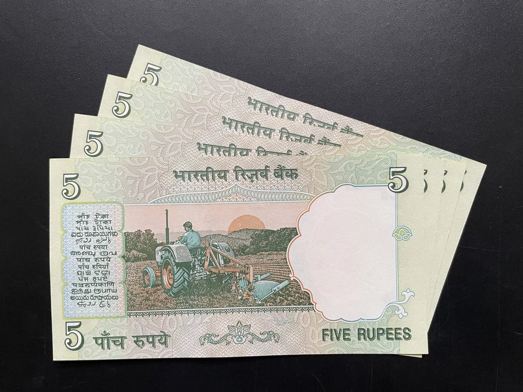 India, Rupees 5 Banknote x 5 Consecutive Serial Notes