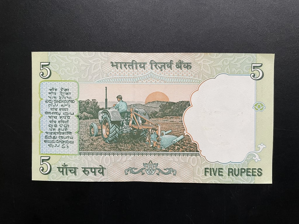 Indian Rupees 5 Serial Number Shifting Error Banknote
