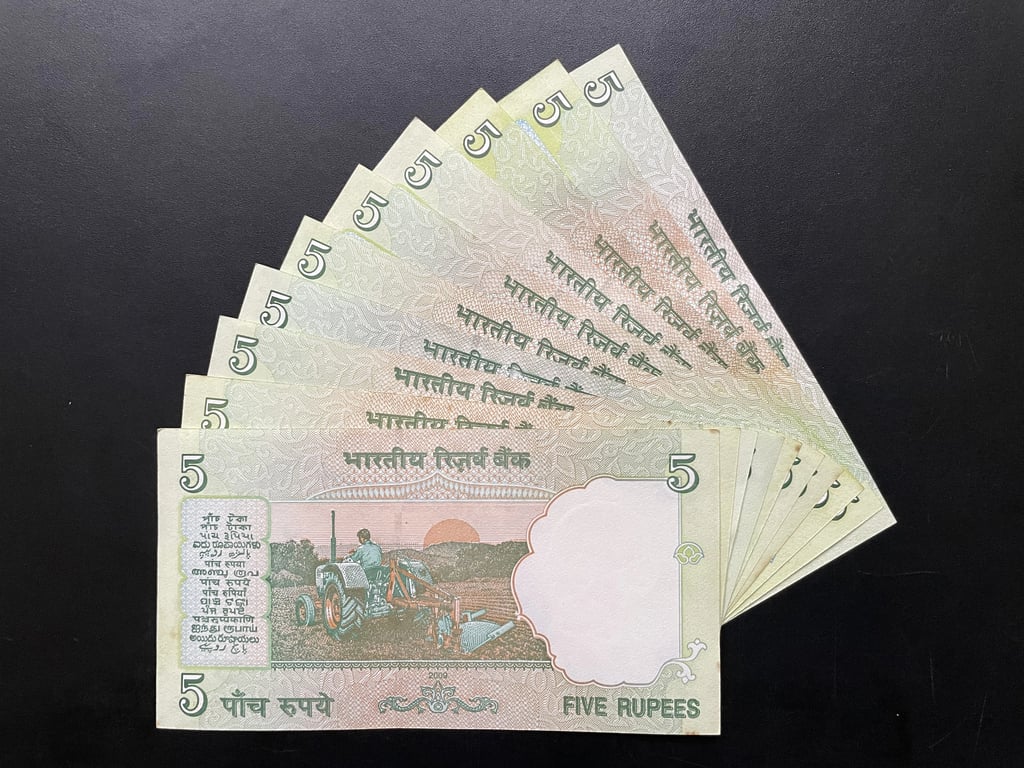 Indian Rupees 5 x 10 Doubling Fancy Serial Number Banknotes