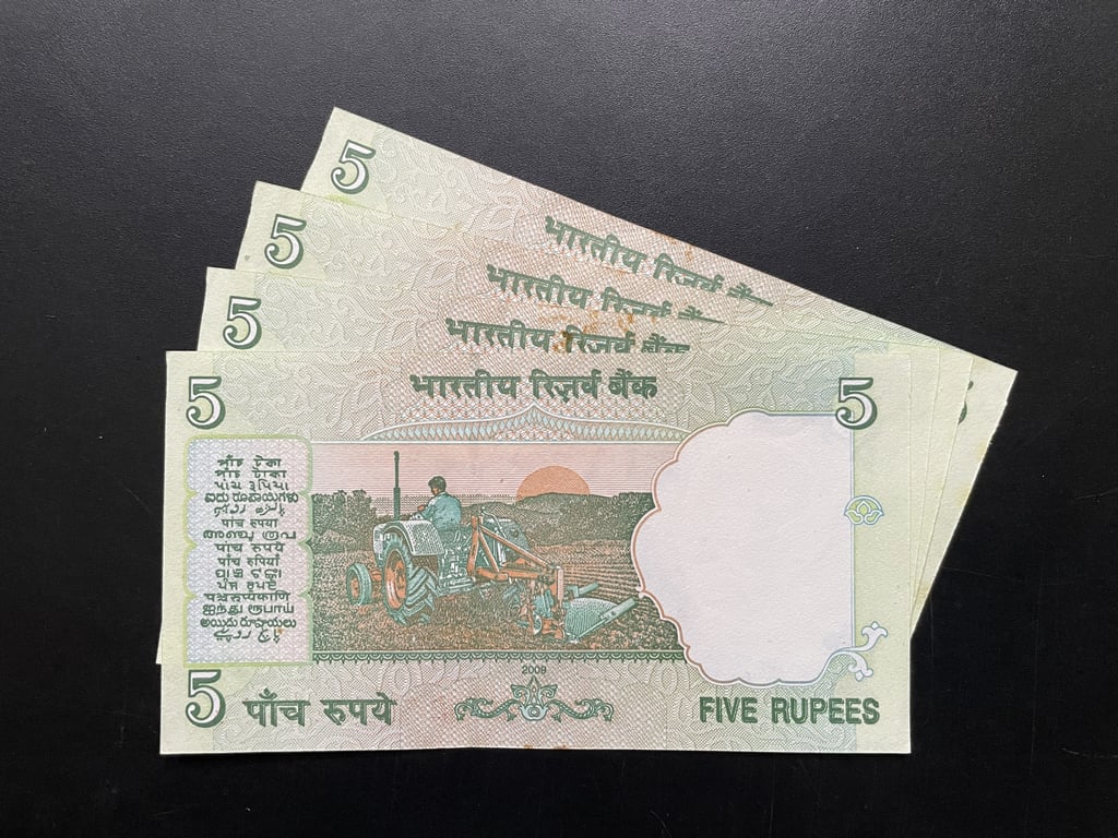 Indian Rupees 5 x 4 Small Mirror Serial Number Banknotes