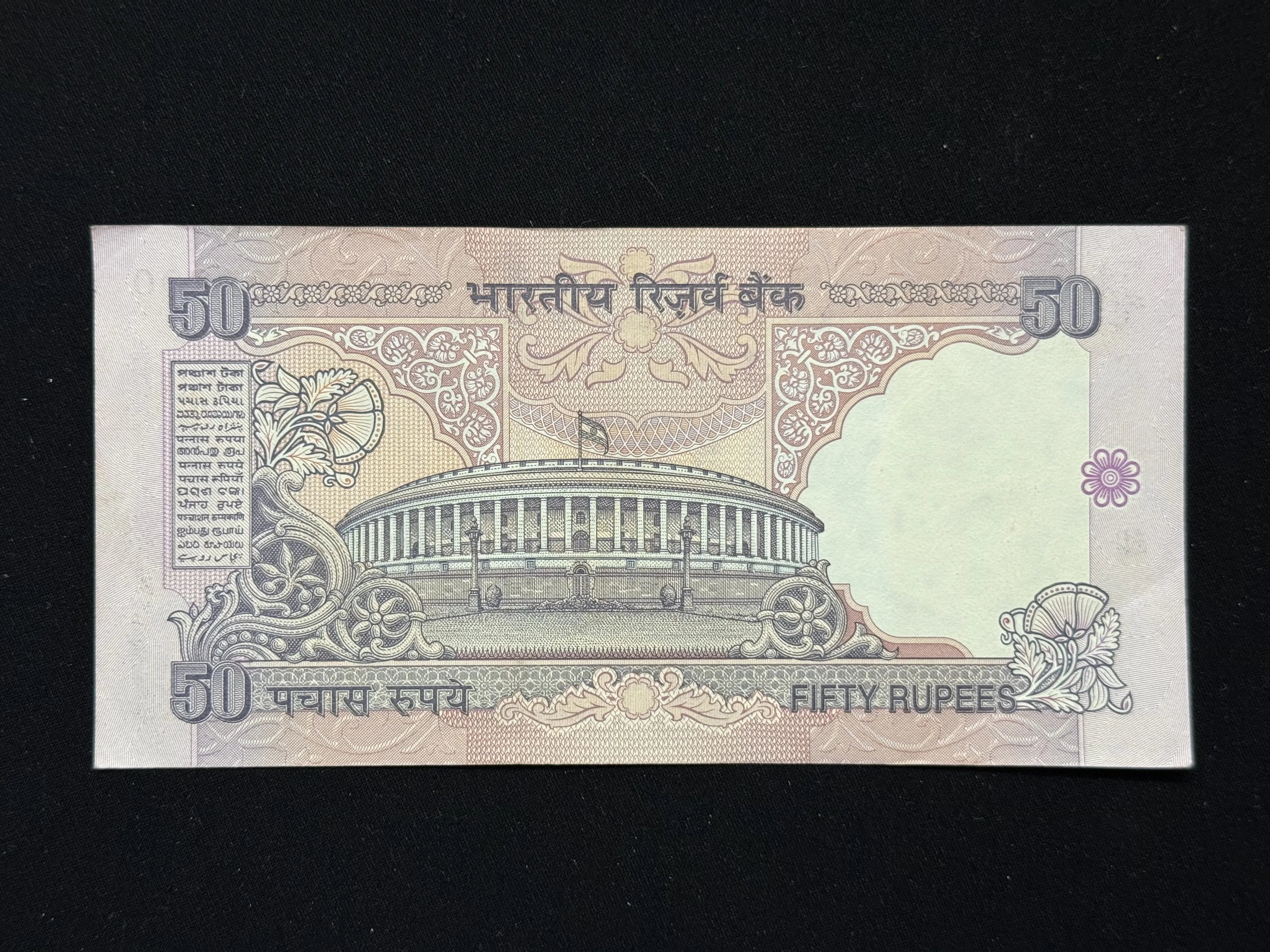 India, Rupees 50 Banknote, Semi Fancy Serial Number 001-300, Sign. Y.V. Reddy Inset F, UNC, (5AF 001300)