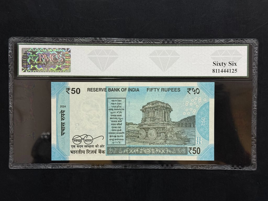 India, Rupees 50 Banknote, Super Solid Fancy Serial Number 2 - 222222, Sign. Shaktikanta Das, PMCS Graded 66 (Gem UNC) Top Graded