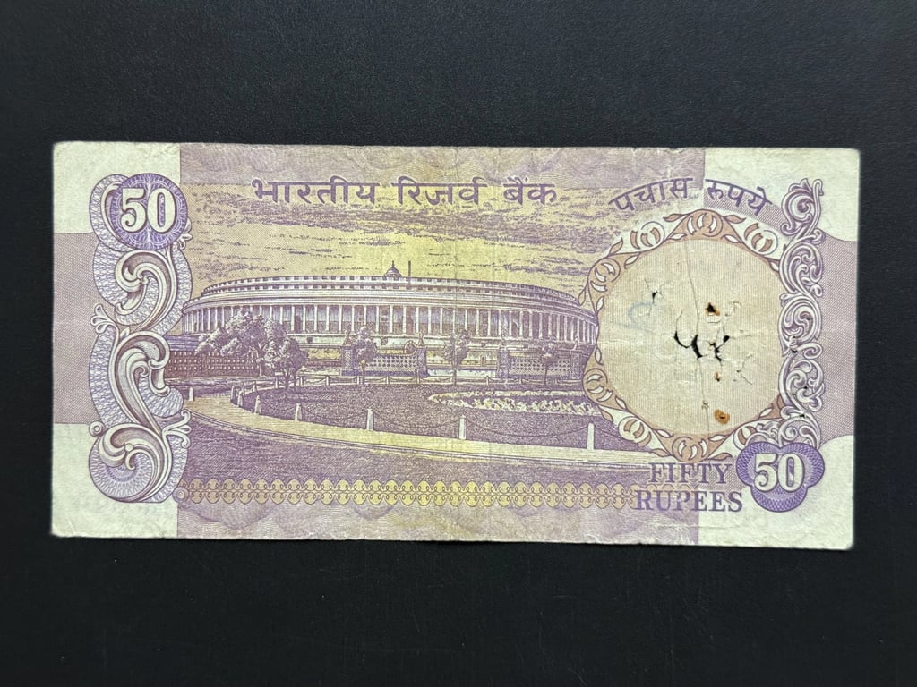 India, Rupees 50 Banknote, Without Flag Issue (4th Issue), Sign. I. G. Patel, Used Condition