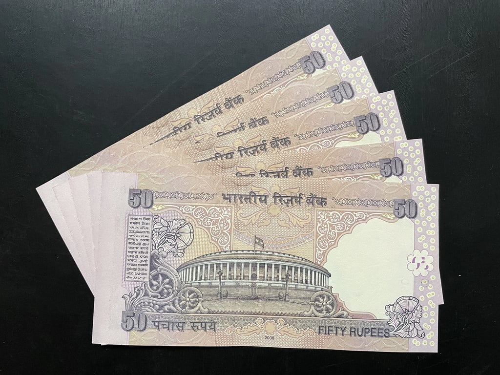 Indian Rupees 50 x 5 Consecutive Serial Banknotes