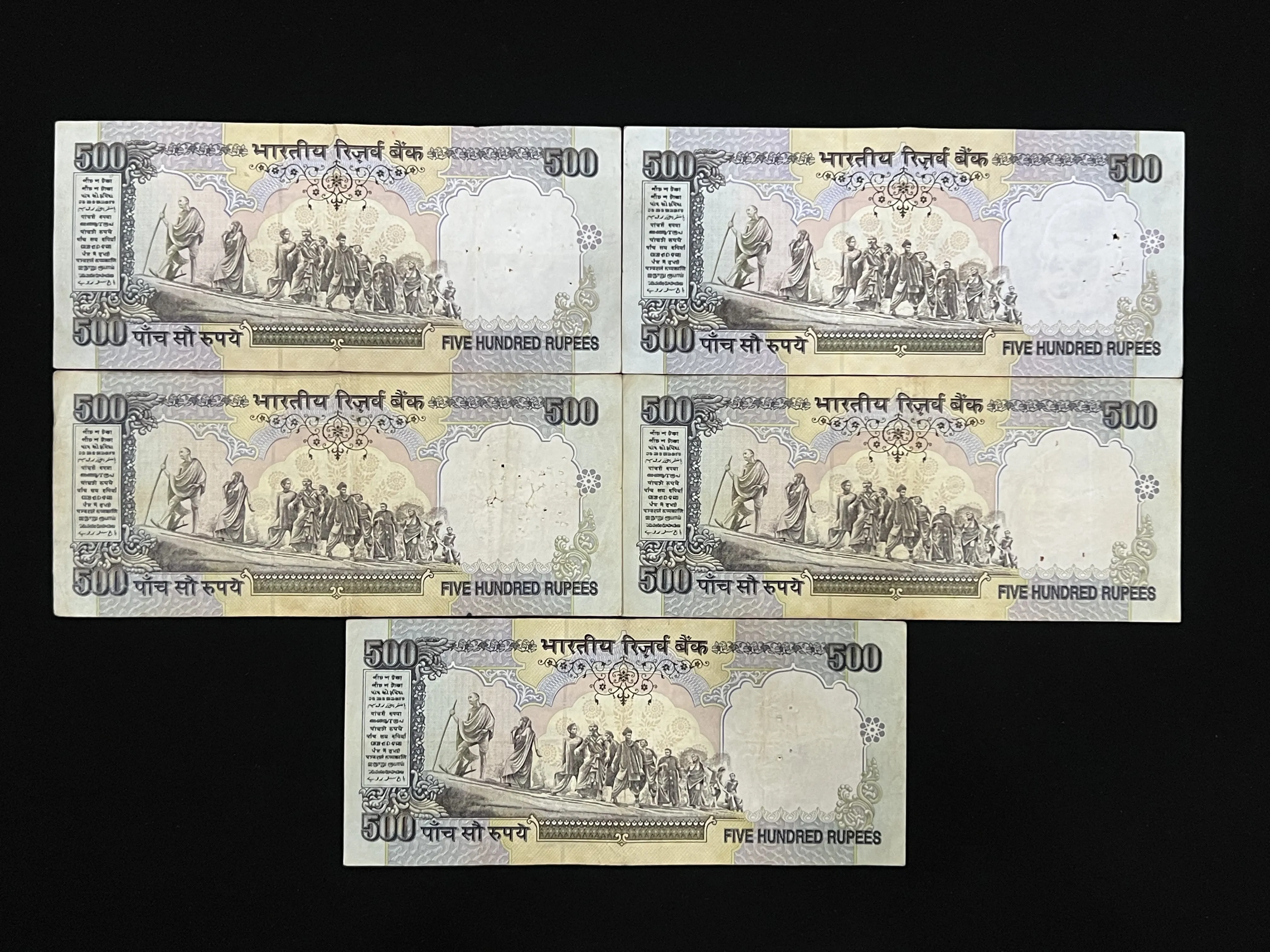 India, Rupees 500 x 5 Banknotes, Second Series (Blue) Issue, Sign. C. Rangarajan, Inset Plain, (1CR 871986)
