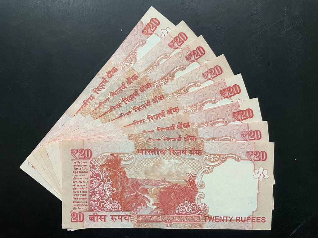 Indian Set of Rupees 20 Fancy Serial Number Banknotes 011001 - 088008