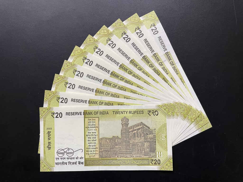 Indian Set of Rupees 20 x 10 Banknotes of Holy Fancy Serial Number Banknotes Ending 786