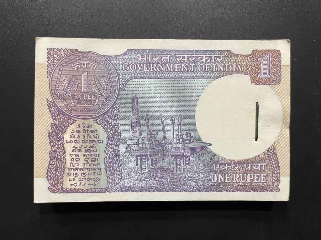 India,1992 Rupee 1 Complete Serial Bundle of 100 Note