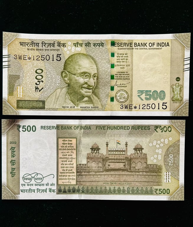 IS 143 RS 500 INDIA BANK NOTE STAR REPLACEMENT SERIES 3WE INSET U 2022