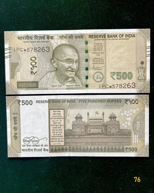 IS 76 - Rs 500 India Banknote Star Replacement Issue 1PC INSET R 2019 Limited Issue