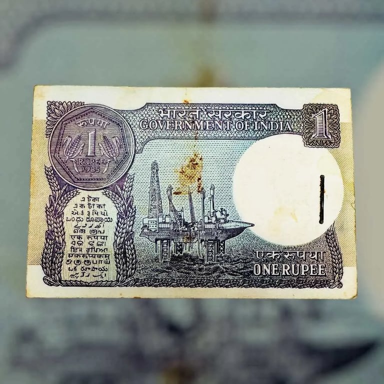 Re 1 India Banknote Serial Bundle Signed By Pratap Kishan Kaul Inset 1985 Small Coin Issue with 786 Serial Inside Unique and Rare