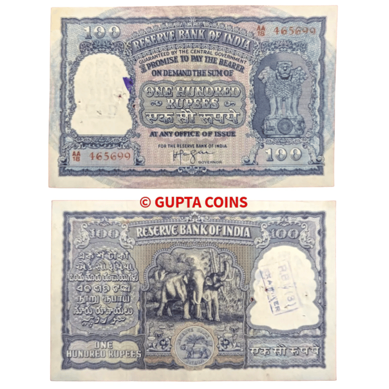 Republic India, 1953, 100 Rupees 3rd Issue, Signed by H.V.R. Iyengar AA Prefix, S. No. AA18 465699, picture of elephants at the reverse, (KJ & RR # 6.7.3.2)