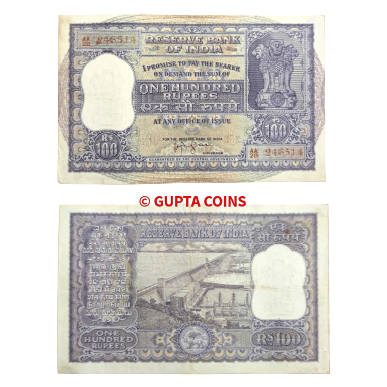 Republic India, 1960, 100 Rupees, Signed by H.V.R. Iyengar, Serial number in Red, AA Prefix, S. No. AA20 246511, picture of Hirakud Dam and Hydro Electric station at the reverse, (KJ & RR # 6.7.4.1)