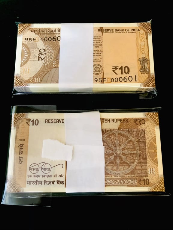 Rs 10 India Banknote Low Serial 000601 To 000700 Serial Packet Gem Unc E 2023 Issue Unique And Rare