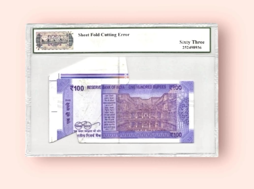 Rs 100 REPUBLIC INDIA BANKNOTE GRADED 63 SHEET FOLDING CUTTING ERROR Inset A signed by Shaktikanta das UNC Unique and Rare