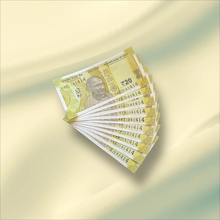 Rs 20/- INDIA Bank note Tripling NO 10 Note Set Number 141414 GEM UNC UNIQUE & RARE