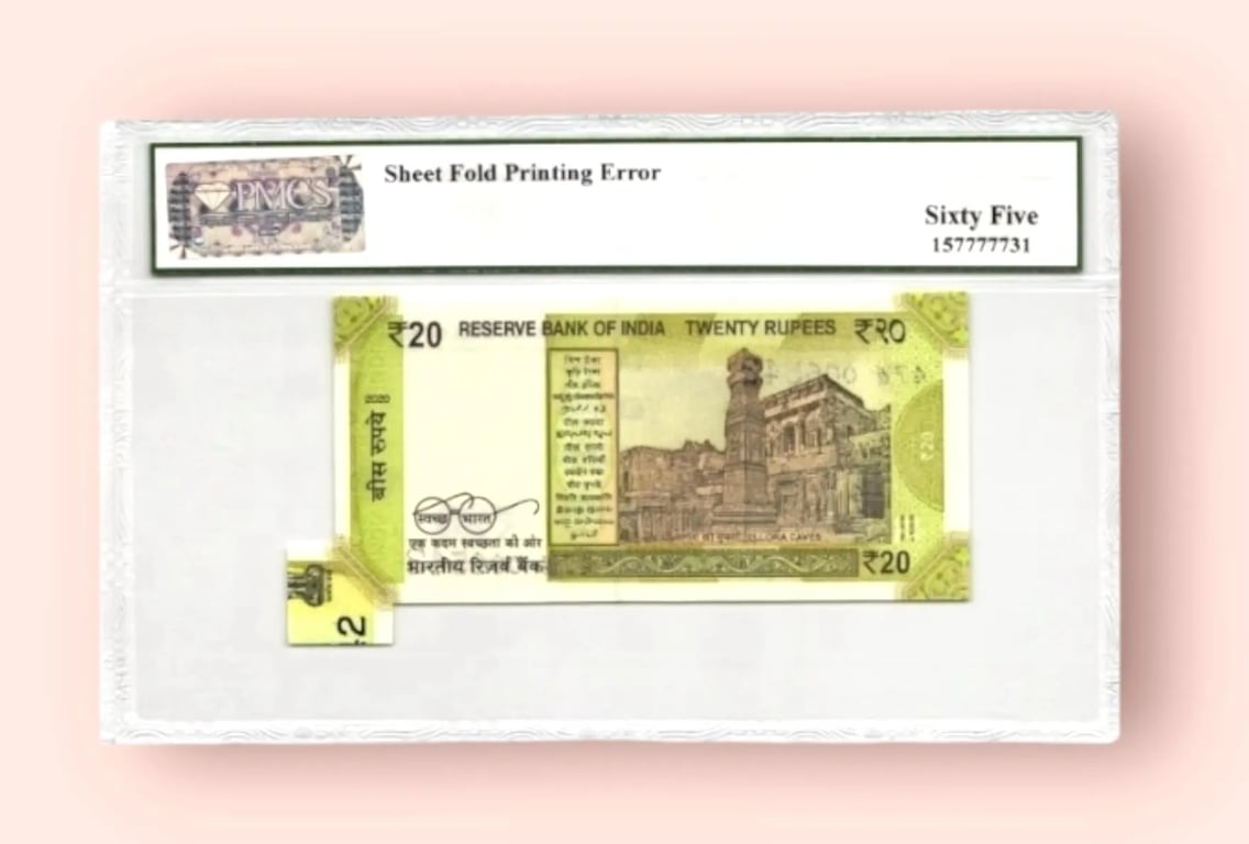 Rs 20 INDIA BANKNOTE GRADED 65 SHEET FOLDING PRINTING Error GEM UNC Signed by Shaktikanta das Very Unique Latest IssueA