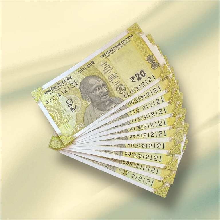 Rs 20/- India Banknote TRIPLING Number *10 Note Set Gem Unc Very Unique and Rare